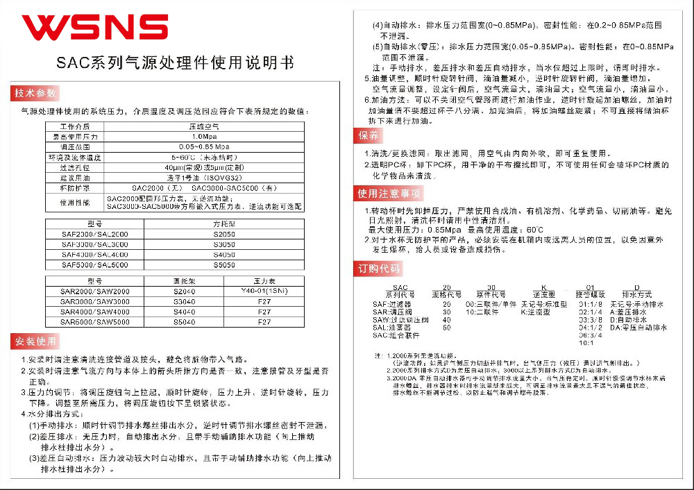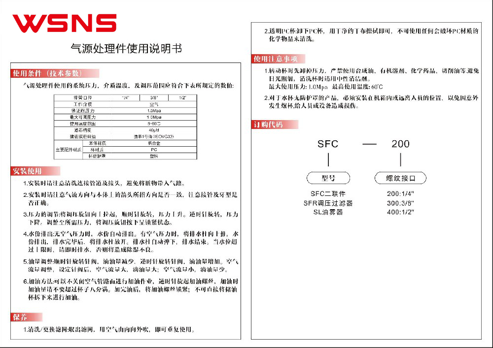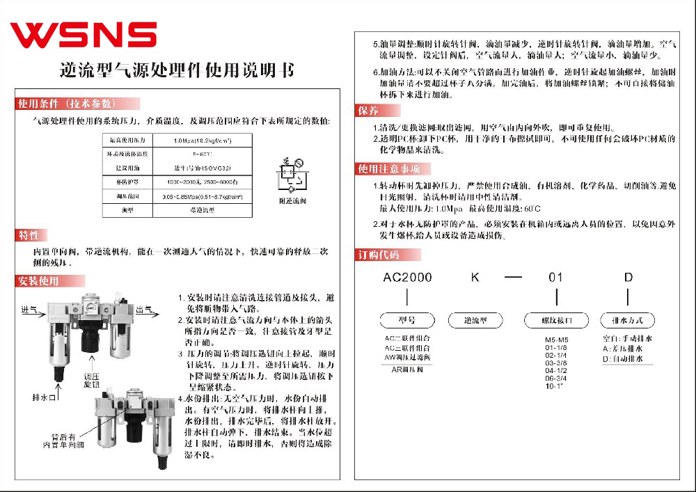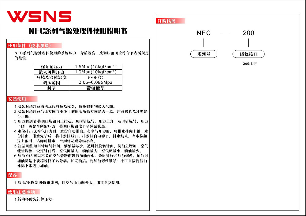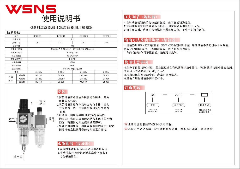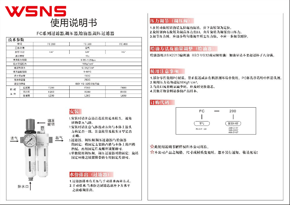 FC系列过滤器、调压器、给油器、调压过滤器使用说明书