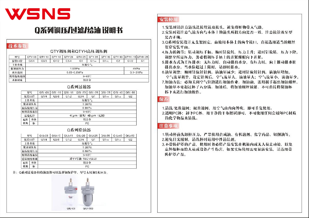 A系列过滤器,调压器,给油器,调压过滤器使用说明书